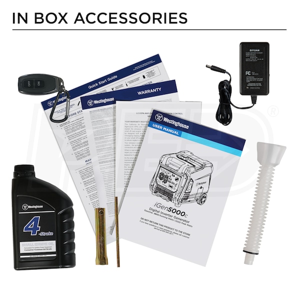 - Oil, Funnel, Tool Kit, Manual, and Quick Start Guide
