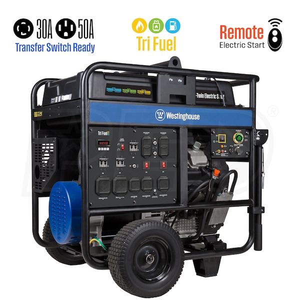Westinghouse WGen20000TFc - 20,000 Watt Electric Start Tri-Fuel Portable Generator w/ CO Sensor & Wireless Remote Start (49-State)