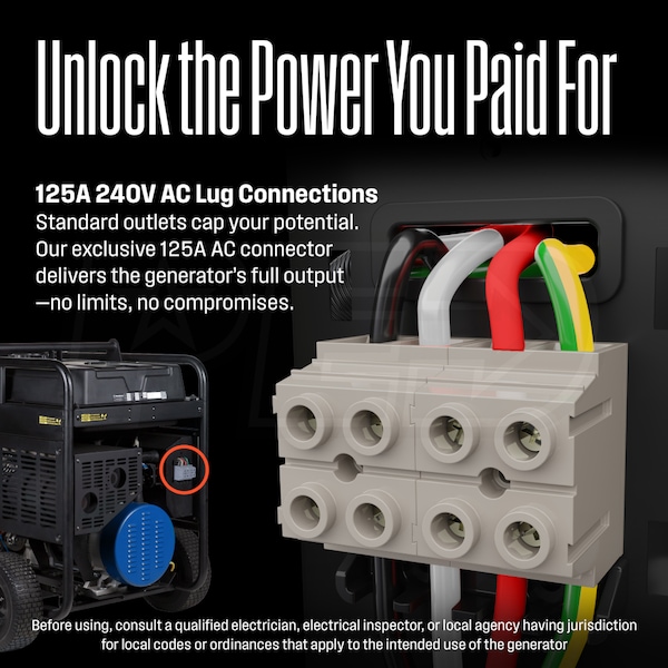 - With high output designed for easy whole-home backup, our exclusive 125A 240V AC lug connector