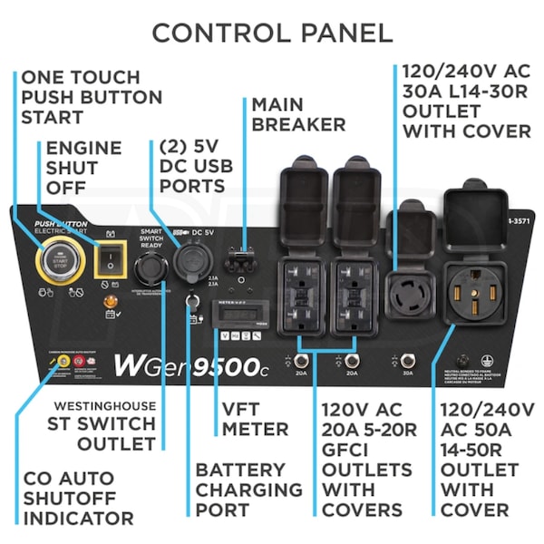 - Westinghouse WGen9500 Electric Start Gas Powered Generator