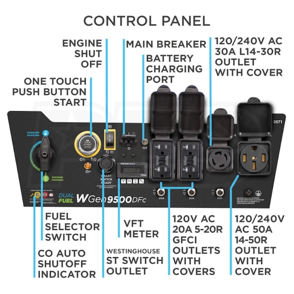 - Westinghouse WGen9500DF Electric Start Dual-Fuel Generator