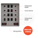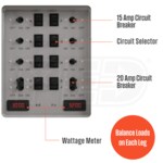 - Our transfer switch includes a total of 8 circuits, with 6 single pole 15 A circuits and 2 single pole 20 A circuits