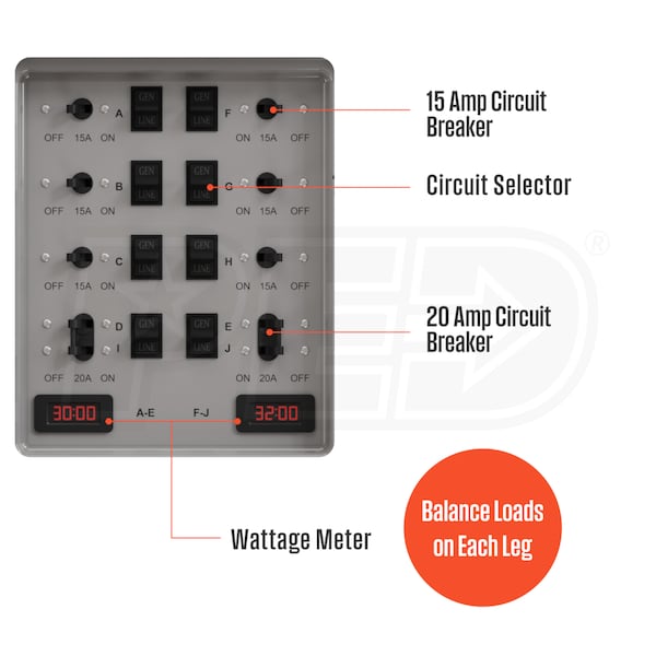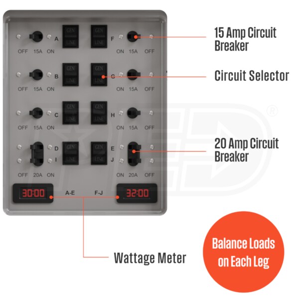 Keep the lights on even during a power outage with our reliable and durable transfer switch. Designed to seamlessly transfer power from your generator to your home or business, our transfer switch ensures that you never have to worry about losing power again. A transfer switch is an essential piece of equipment that enables you to connect your generator directly to your home or business, ensuring that power is transferred safely and efficiently during an outage. Rather than relying on extension cords or other makeshift solutions, a transfer switch provides a reliable and permanent connection that can be operated easily with a flip of a switch. Our transfer switch is designed with both durability and functionality in mind. Constructed with powder-coated steel and tin-coated copper wire, it is built to withstand even the harshest environments and provide reliable power transfer for years to come. It is also compatible with generators up to 7500 running watts, making it an ideal choice for a wide range of applications. With 8 total circuits, including 6 single pole 15 A circuits and 2 single pole 20 A circuits, our transfer switch allows you to power a variety of devices and appliances in your home or business. And with included components like a transfer switch, 1x 1in PVC fitting, and 2x 2in PVC fittings, you'll have everything you need to get set up and running quickly and easily (please note that a junction box is sold separately). Remember that the installation of this transfer switch should only be done by a licensed electrician. This ensures that the installation is done safely and correctly, reducing the risk of electrical hazards or damage to the switch or your property. Don't let a power outage leave you in the dark. Invest in our reliable and durable transfer switch today and enjoy peace of mind knowing that you'll always have power when you need it.