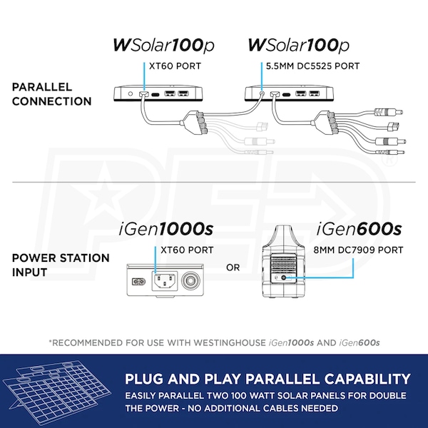 - 5.5mm DC5525 Plug: for paralleling w/ WSolar100p panel